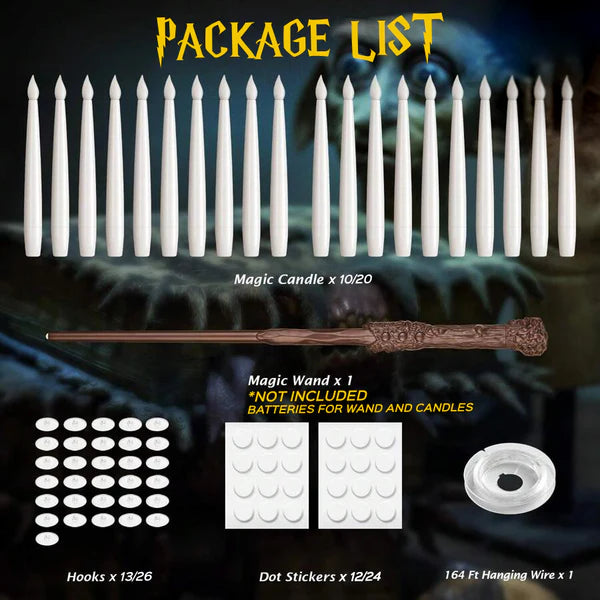 Easily manage your flying candles with our small, wand-shaped remote control. With a simple wave, you can turn the candles on and off. For added fun, swipe the wand along a row of flying candles to light them up one by one.